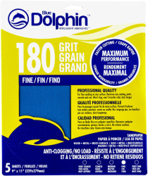 9"x11" Aluminum Oxide Sand Paper 180 5-Pack, Anti-Clogging, No Load, Blue Dolphin, Yellow