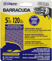 5" Barracuda Multi Hole Hook & Loop Disc 120 Grit, Anti Clogging, No Load, 5 Pack