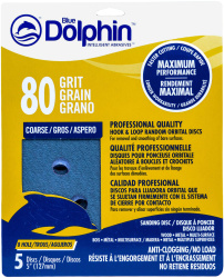 5" 8 Hole No Load Disks 5 Pack 80 Grit Anti-Clogging, Hook & Loop, Blue Dolphin