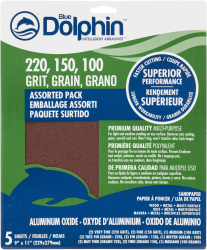 9"x11" Aluminum Oxide Sand Paper 2 SHEETS 200, 2 -150, 1-100, 5 Pack, Blue Dolphin