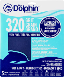 9"x11" Wet & Dry Silicone Carbide 320 5 Pack, Blue Dolphin, Sand Paper